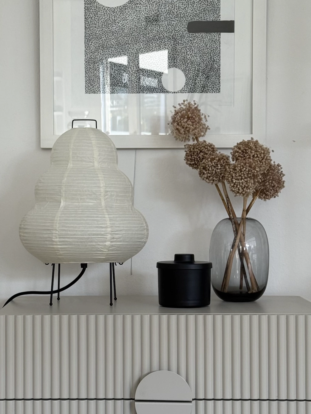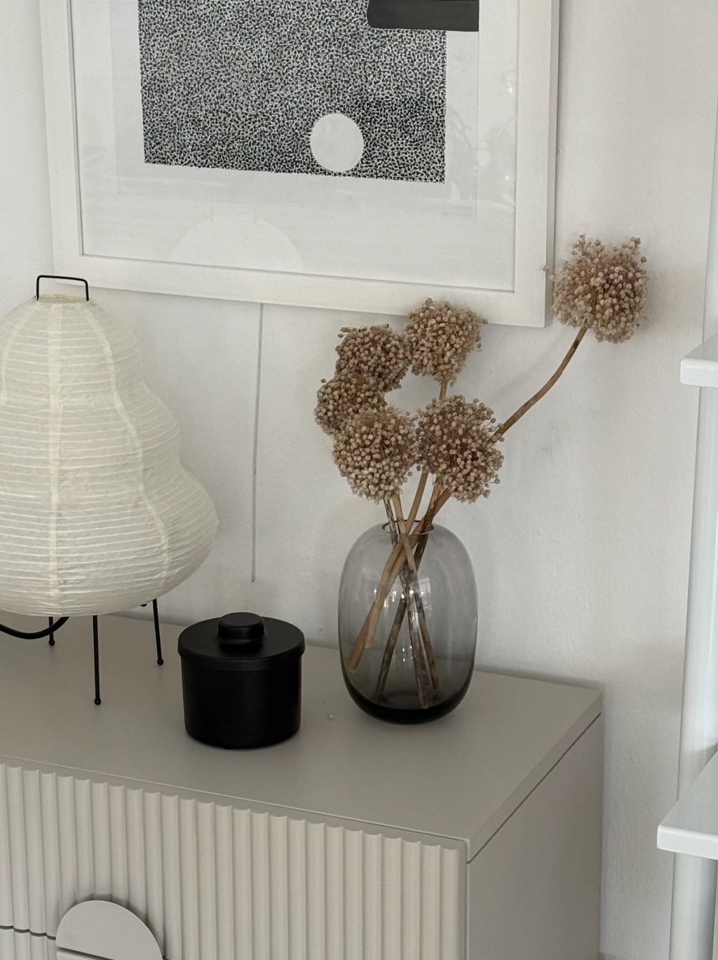 Jarrón de vidrio gris.